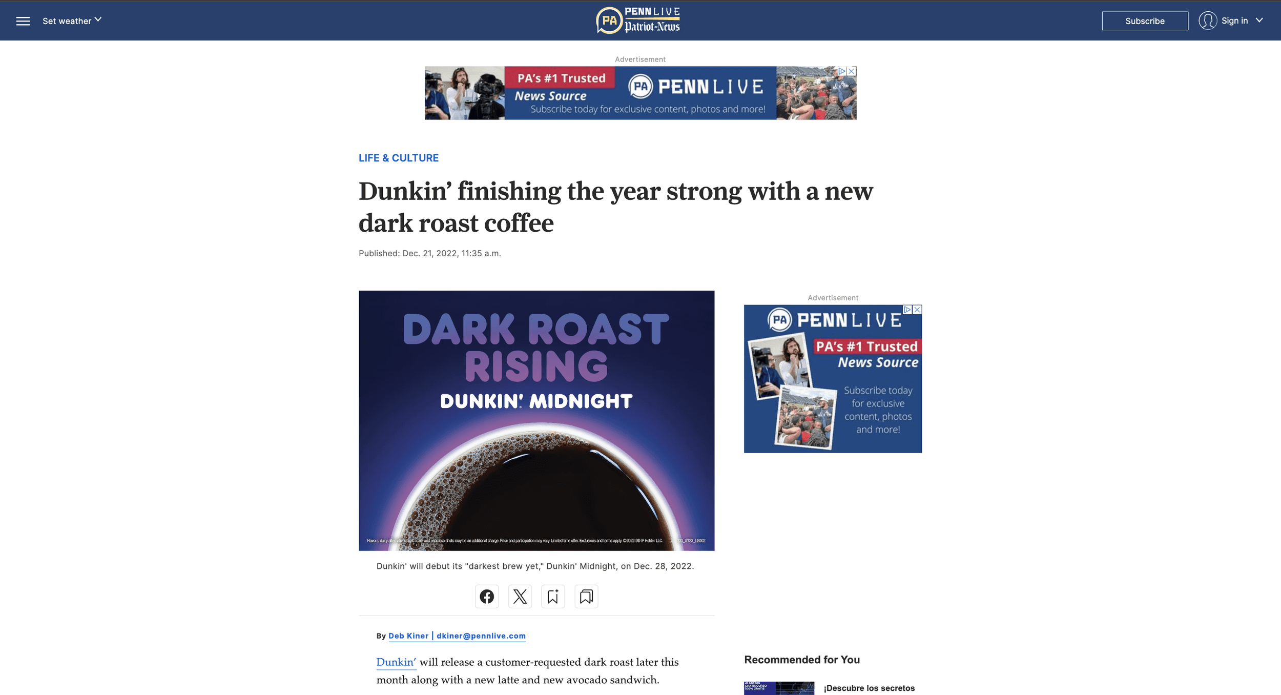 After the official launch of Dunkin Midnight in the winter of 2022, review articles began to flood the internet with leaning opinions. While most featured product shots and the finalized campaign, the Dunkin News and PennLive Patriot News featured two of my original concept designs I presented to the ARC Worldwide team during my time as an intern.