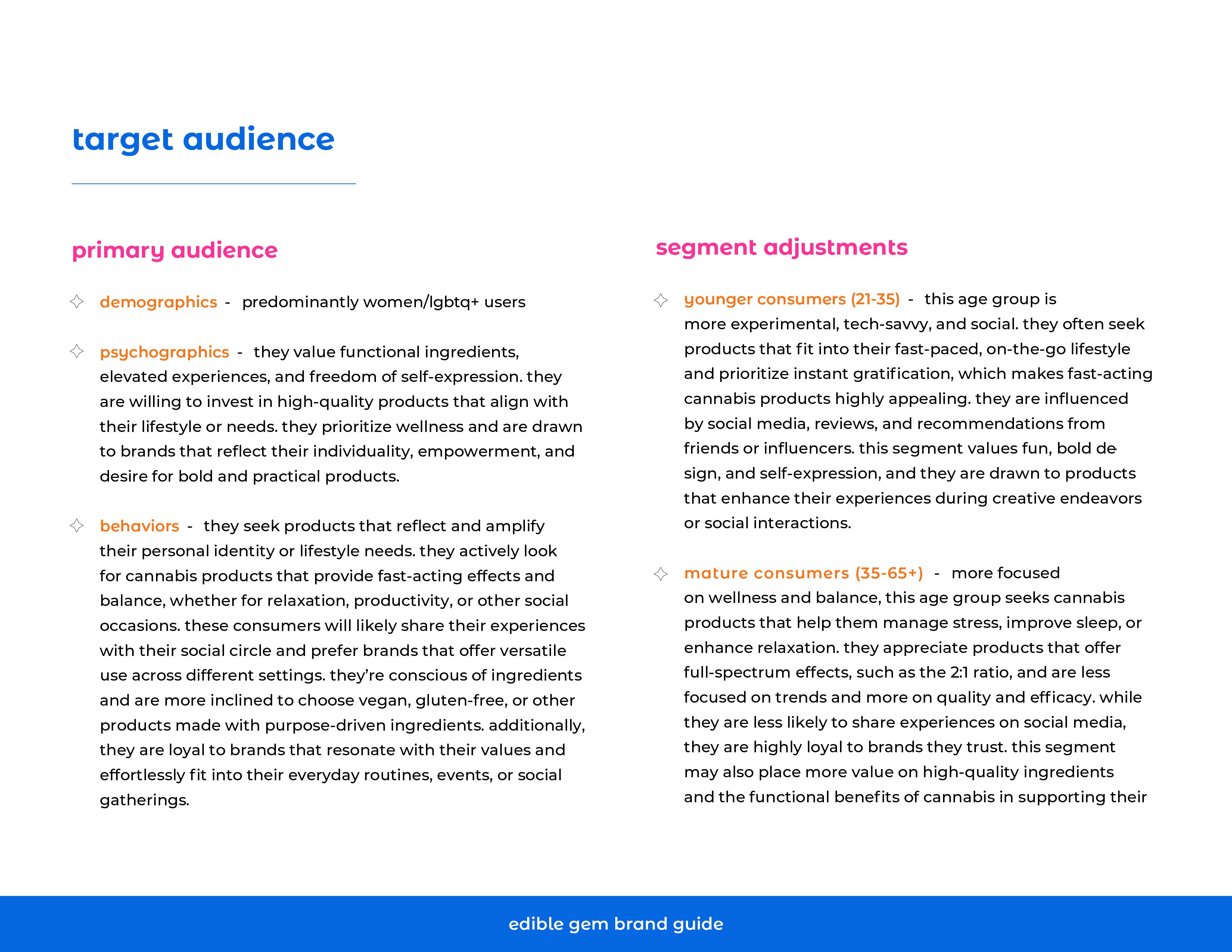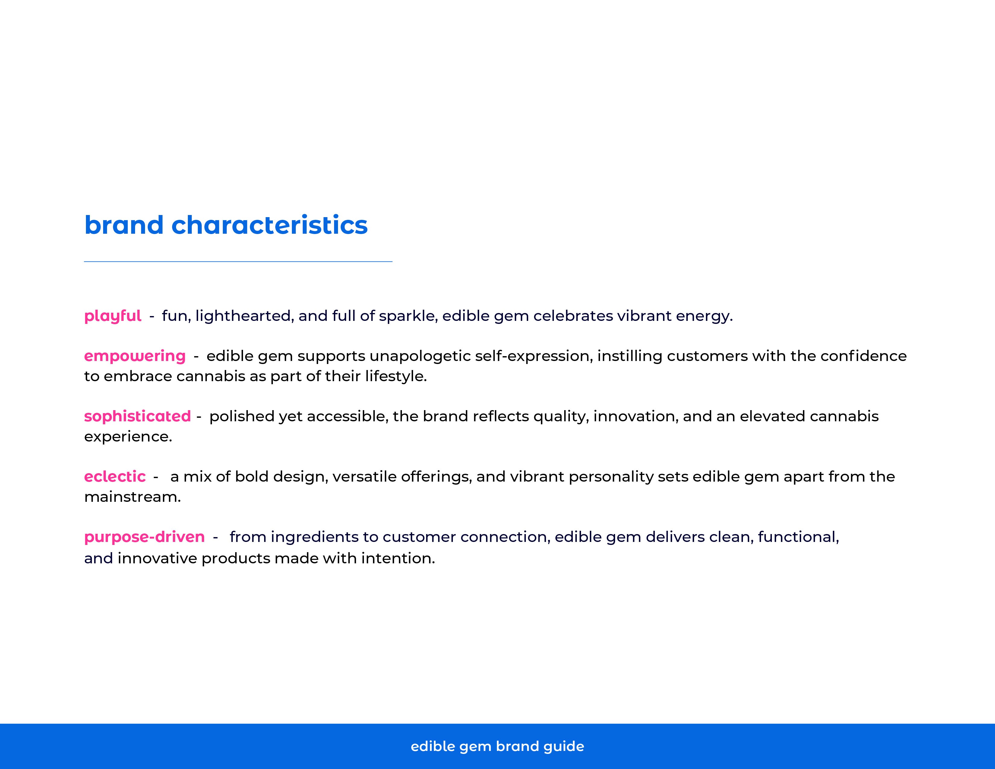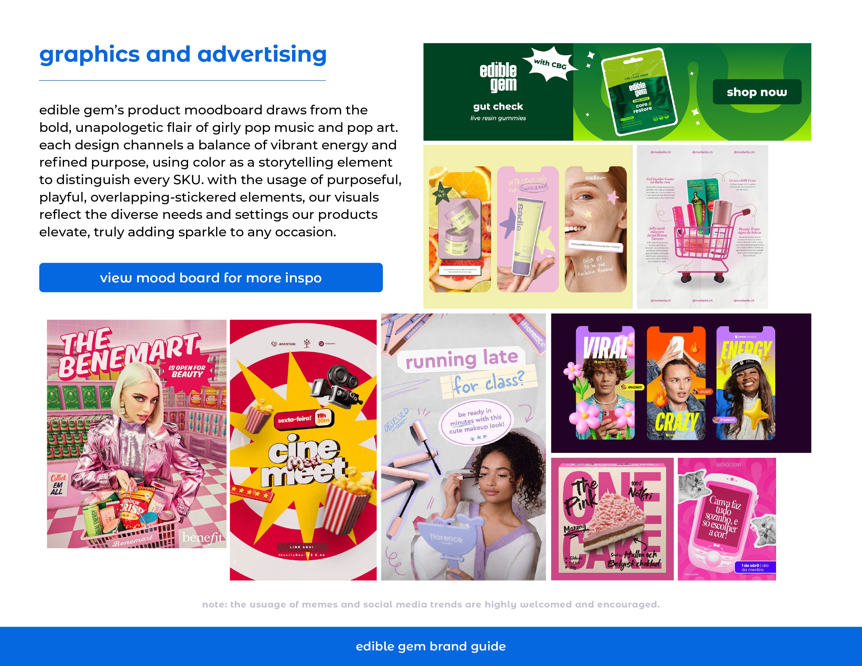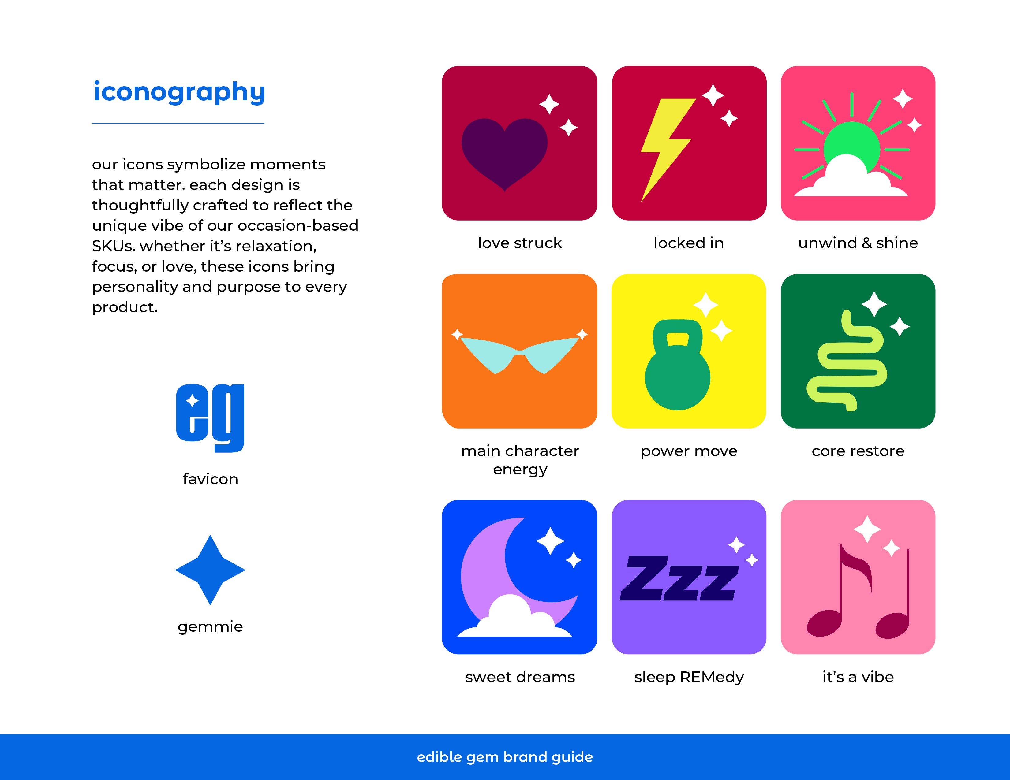 edible gem is a women-owned cannabis brand that blends bold, eclectic design with functional innovation. embracing feminine energy with an edgy attitude, edible gem captures a playfully vibrant yet confident tone, balancing the versatile nature of its products with a sense of unapologetic self-expression and effortless sophistication.