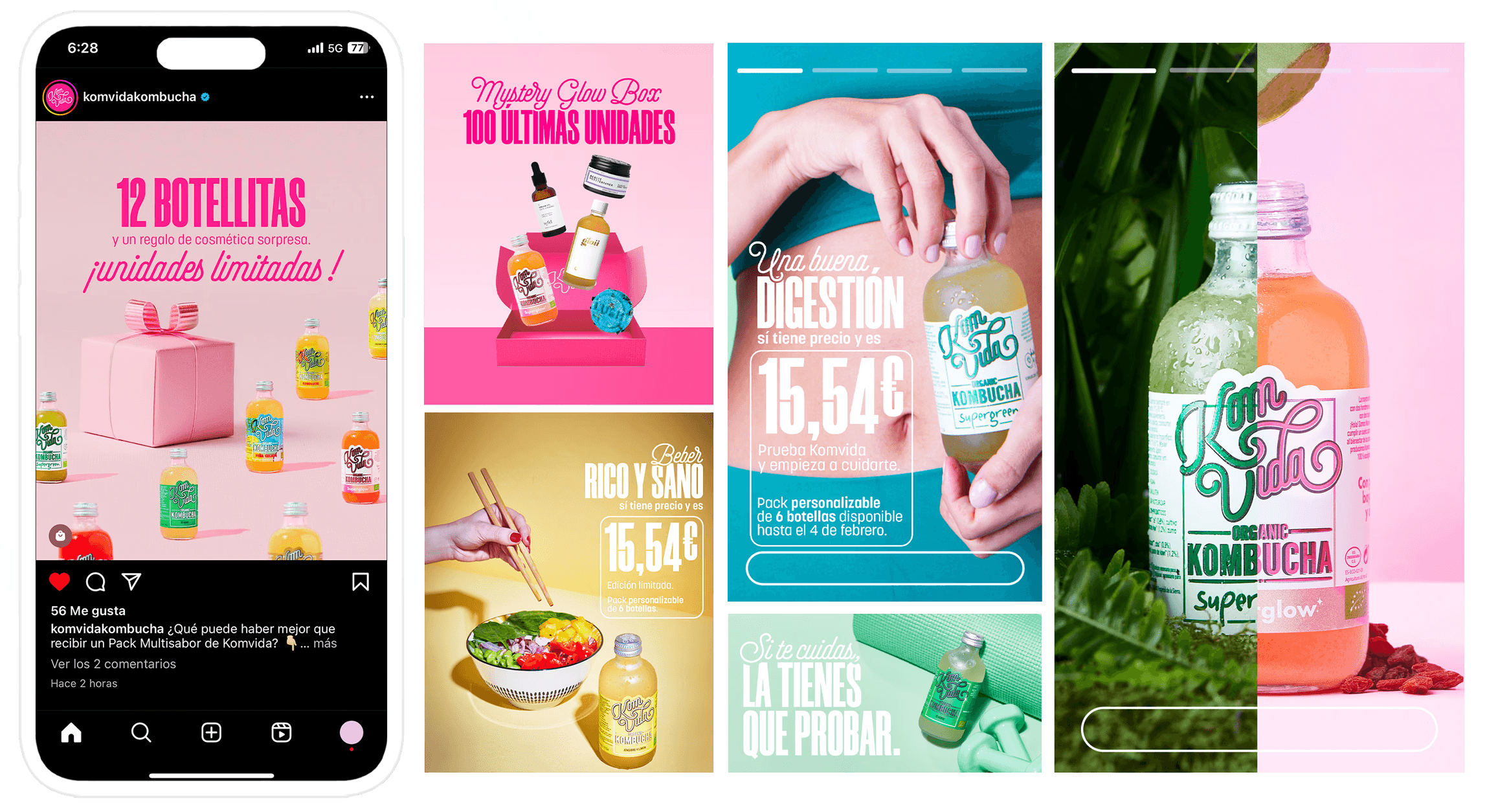 And of course in this day and age of technology, we were finally tasked with creating social media stills and motion graphics to elevate the voice and visability of Komvida Kombucha. These post ranged promos and mystery boxes to UGC teaser and interactive content.